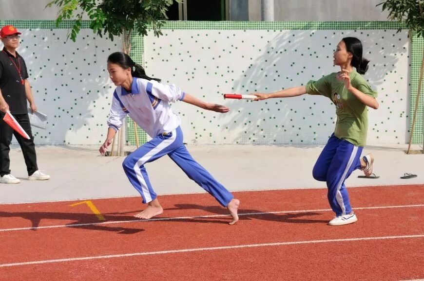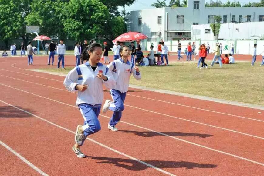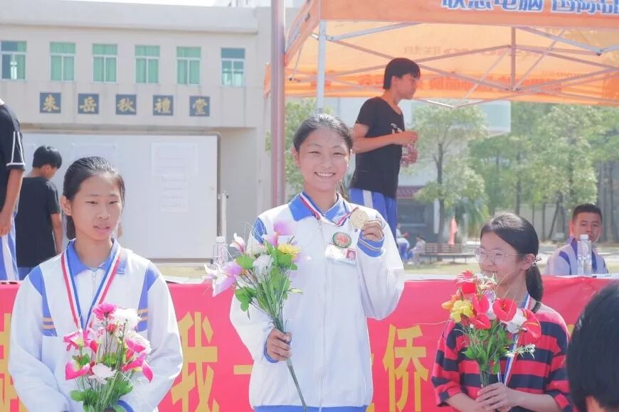 运动员们在广播的指引下有序进行各项比赛。比赛结果公布后,由校领导给优胜者颁奖。初一(2)班林锦儿在初一女子跳高赛中夺得赛会首金,健儿们戴着奖牌,抱着鲜花,接受粉丝们的喝彩和拍照,沐浴在优胜的激动和喜悦中。