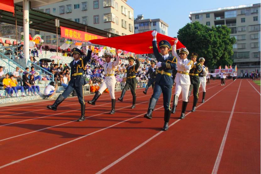 运动会介绍:东圃中学运动号角已经吹响,看少年风华正茂!李其雄校长致开幕词。他引用柏拉图的名言以及中国女排精神,勉励大家不断超越、勇攀高峰。迎着朝阳,东中师生勇敢奔跑吧!