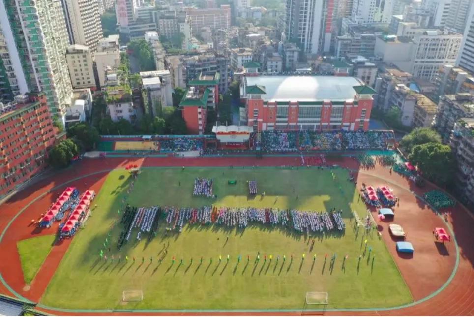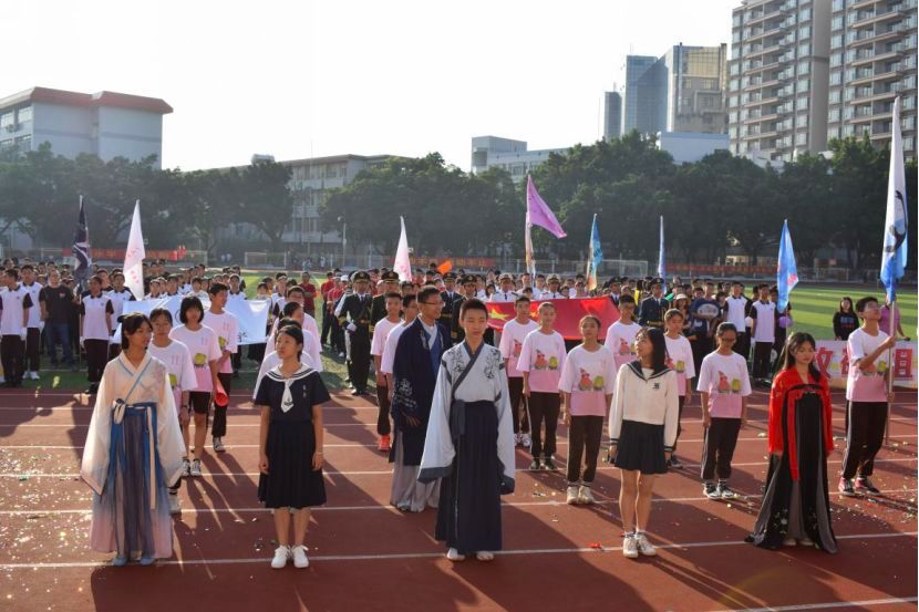 运动会介绍:岭南画派纪念中学举办了隆重正式的校运会,同学们互帮互助的精神为运动会多增添一份意义。同学们分享了一则小故事:在千米长跑中,有位同学的腿抽筋了,另外的同学自发地陪跑全程。虽然最后这位同学没拿奖,但他永远是大家心中的第一名。