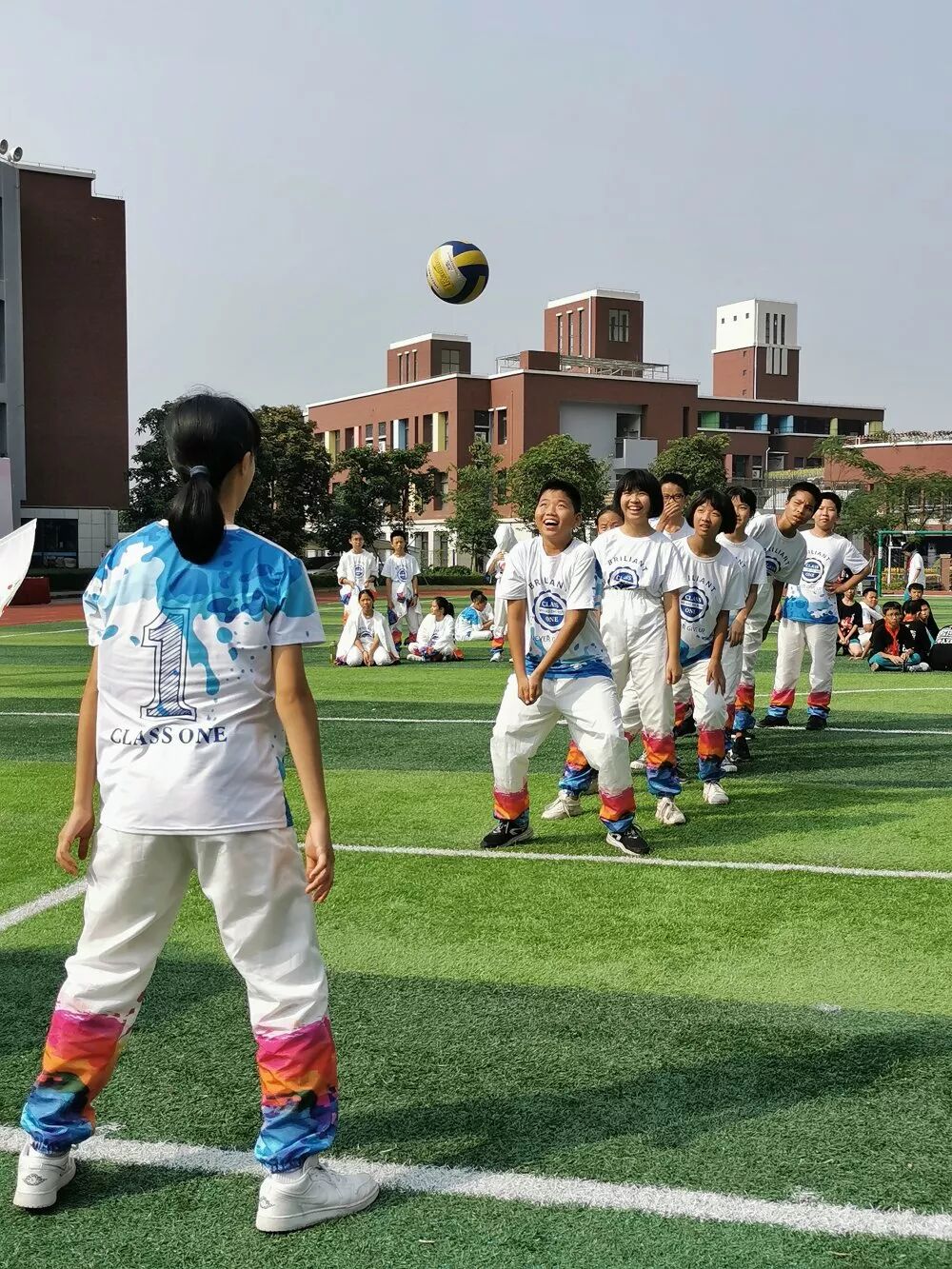 下午,全校师生参与了趣味运动会,本次学生组分为排球垫球接力和仰卧传球两个项目;教职工组分为排球垫球接力和2人3足接力赛两个项目。二中天元师生共同体验体育场上竞争的激烈。胜利时,比赛团队一同欢呼雀跃;落后时,比赛团队相互鼓励。他们之间相互陪伴,共同经历,彼此滋养。
