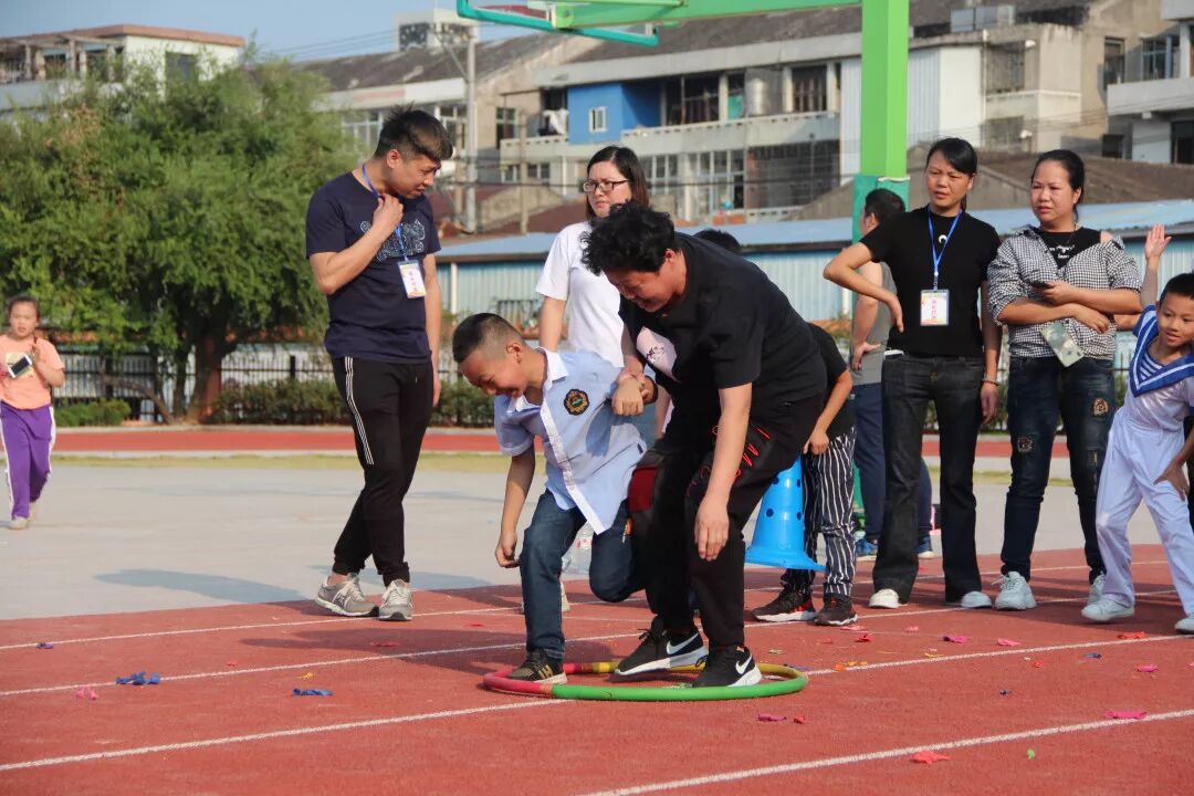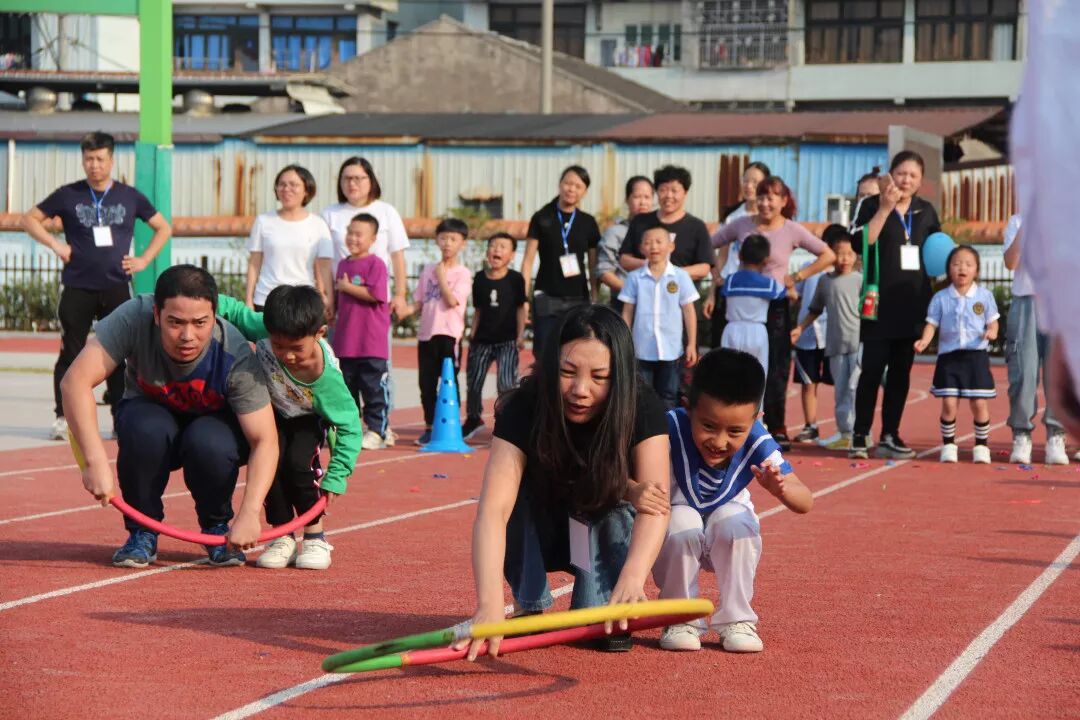 10月23日,瑞安市塘下镇新华小学的操场上格外热闹,一、二年的趣味亲子运动会家长和孩子的喝彩声中正式开始。比赛共设八个项目:一分钟跳绳、一鼓作气、袋鼠跳、夹球跳、抬花轿、羽球飞扬、摸石子过河和跨过幸福桥,每个比赛项目数对亲子参加。