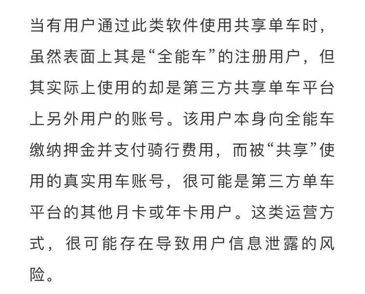 据警方介绍,今年八月他们接到哈罗等共享单车公司报案称,某公司推出的一款名叫"全能车"的App软件,影响了很多共享单车企业的正常服务,造成共享单车公司人民币损失约3亿元。