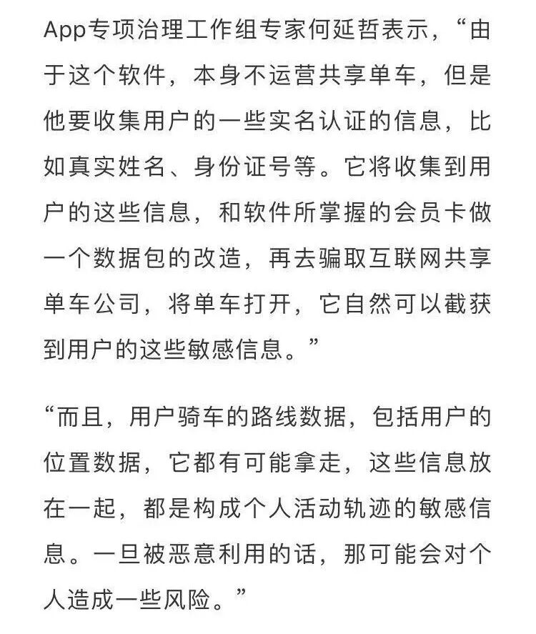 近日,上海公安机关破获了一起能解锁共享单车的万能App案,犯罪嫌疑人发明的App软件能解锁所有的共享单车,自行车是别人的,运营管理也是别人的,但钱却能落入了犯罪嫌疑人的口袋。