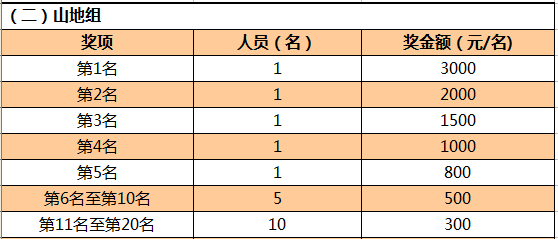 山地车竞速组:使用标准山地车或旅行单车参赛,获奖名次前20名。
