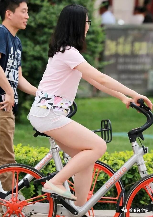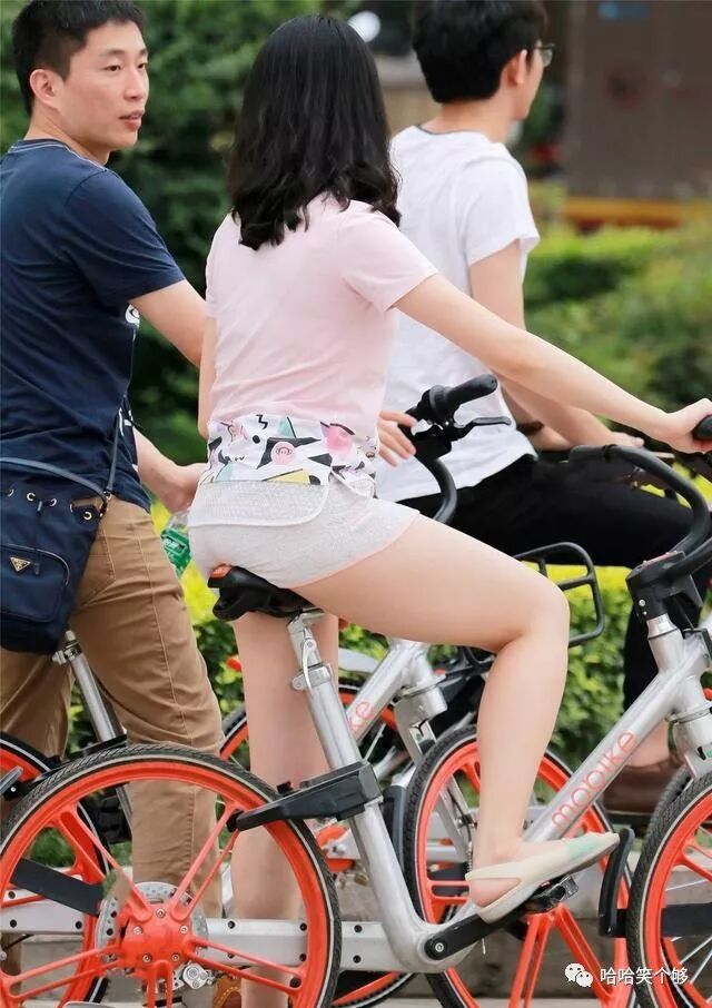 鼻血喷出来啦!听我一句劝,超短裤可以穿,但是不应该骑自行车了.