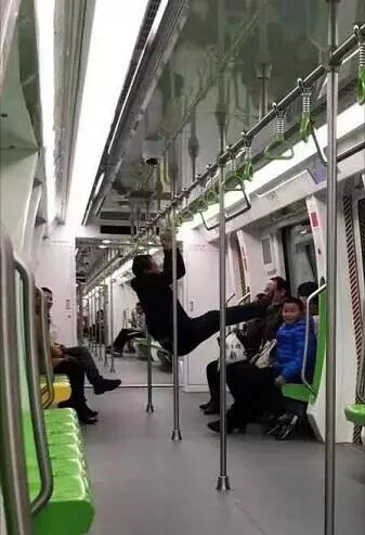 车厢内玩体操