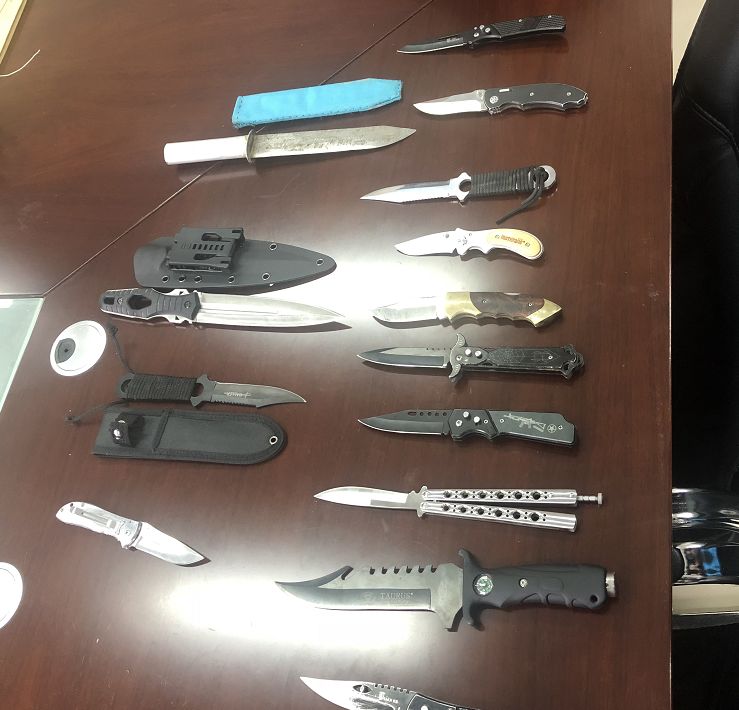 其中有管制刀具、甩棍、易燃喷雾等