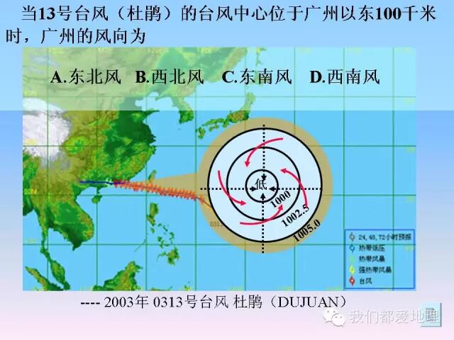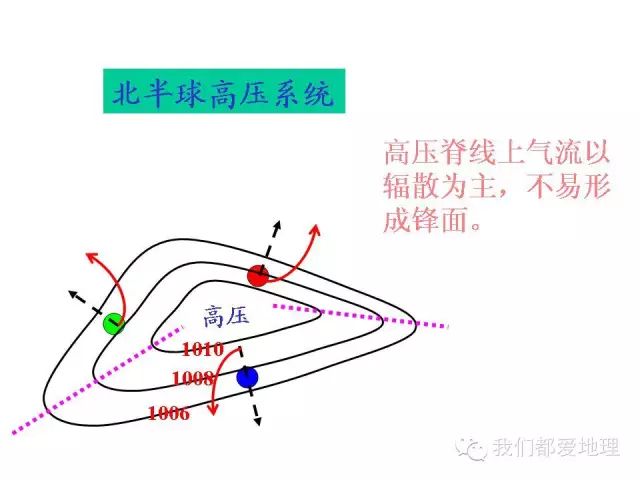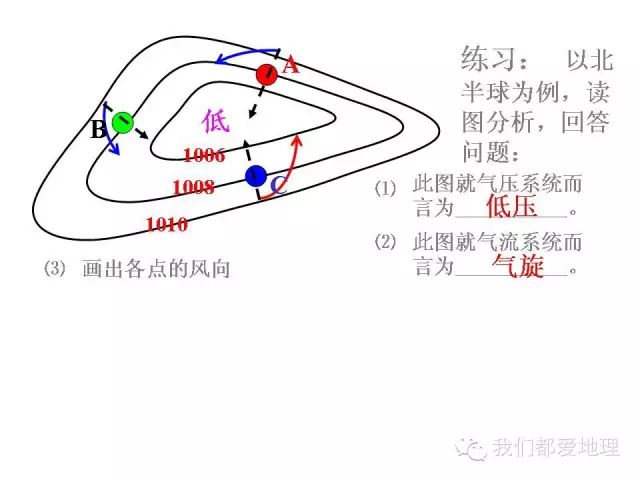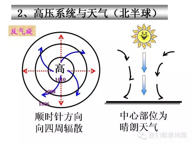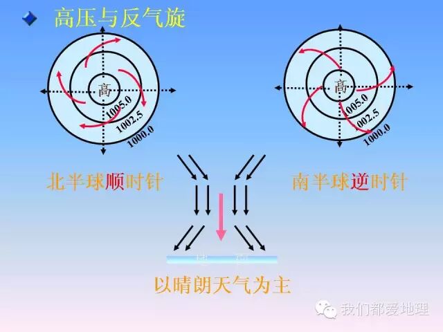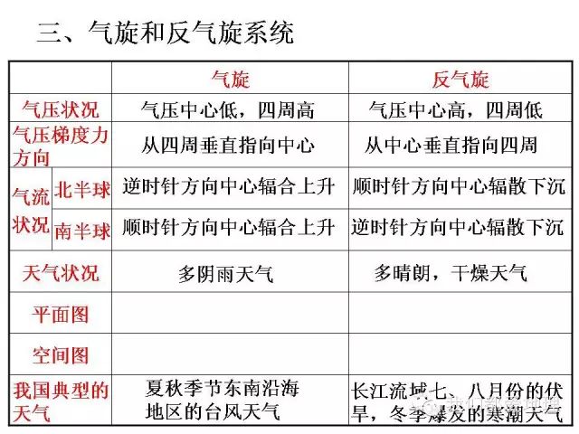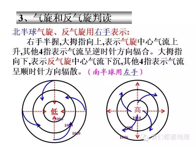 2.气旋与反气旋在南北半球不同的旋转方向。