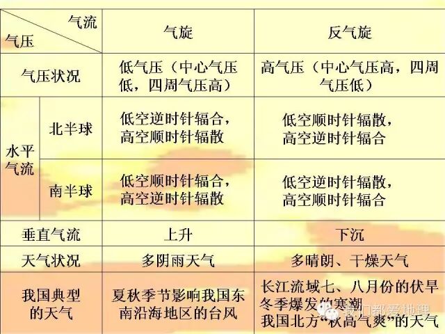 2.从气温、气压、湿度、降水、风等几个方面分析各种天气系统的形成及其气流特点,并综合出各种天气系统控制下的天气状况。