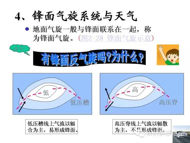 本节由三部分组成:锋与天气、低压(气旋)、高压(反气旋)。