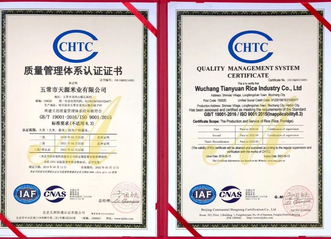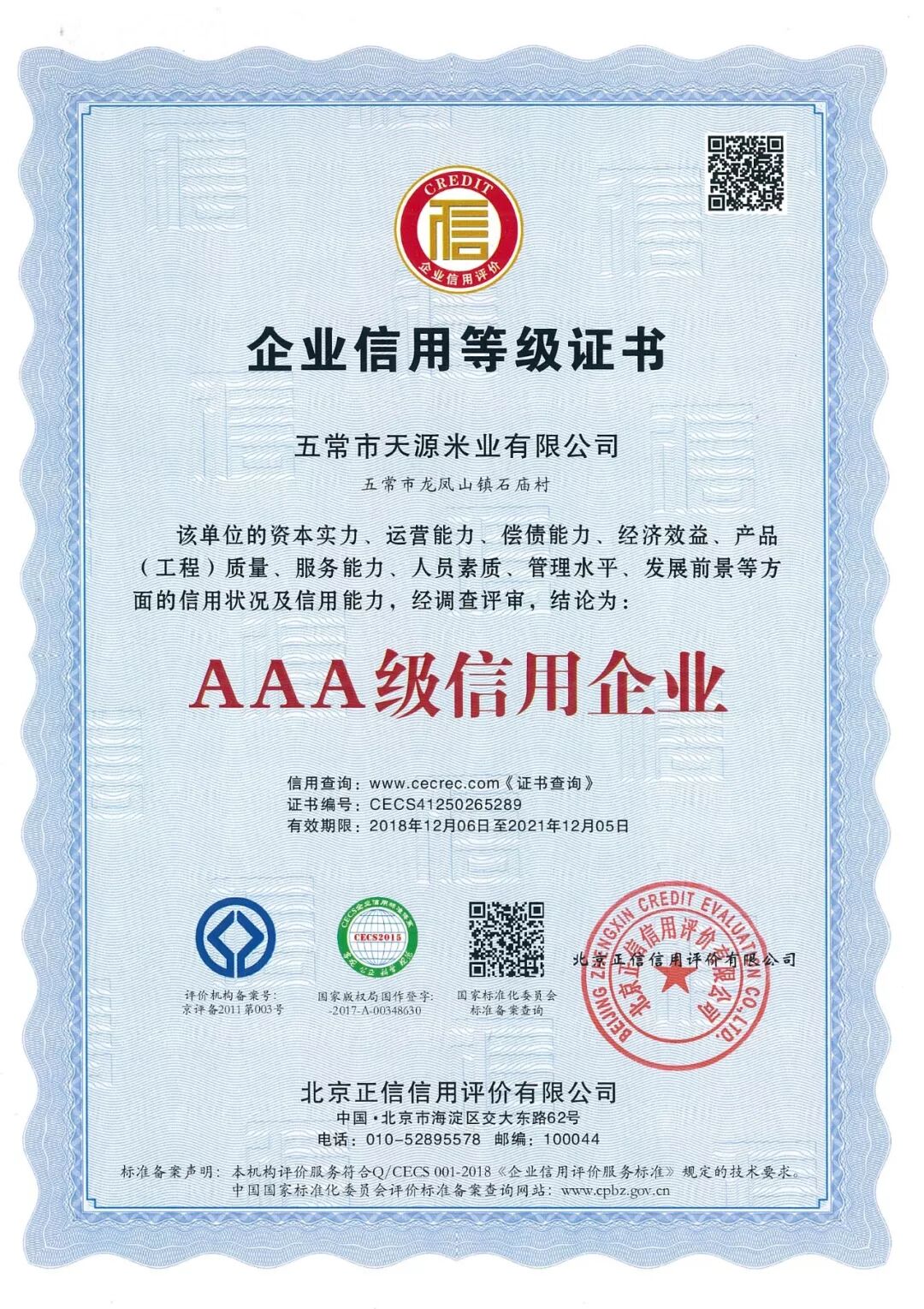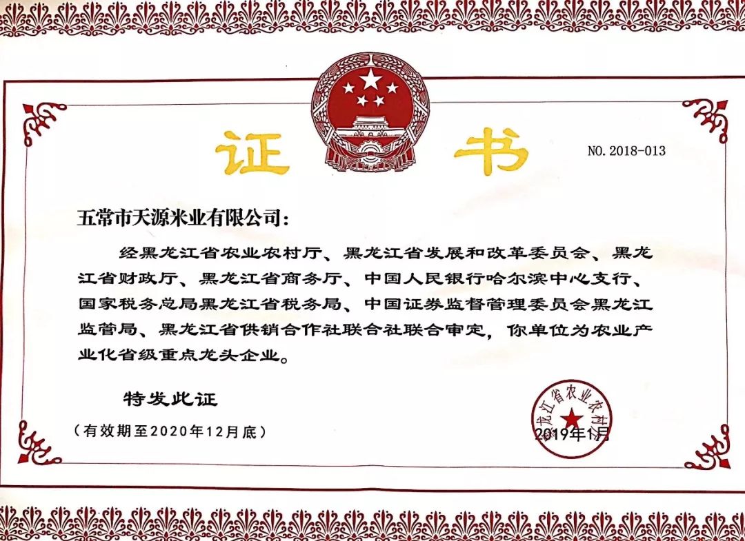 天源米业获得了五常大米国家地理标识保护产品专用标志证书,市场叫五常稻花香的只有颁发五常地理标识证书才能叫真的五常稻花香,天源米业还被黑龙江省农业农村厅,发展和改革委员会,省财政厅,省商务厅,省税务局,省监管局联合审定农业产业化省级重点龙头企业,这么多的荣誉足以证明工厂的实力强,品质过硬~~