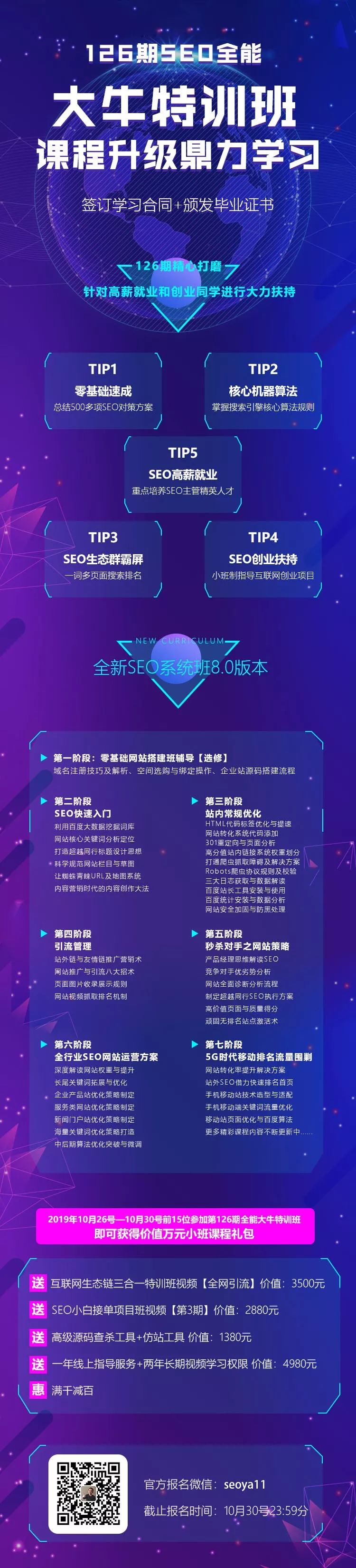 全新SEO系统班8.0版本强势来袭,针对想高新就业和创业同学进行大力扶持!
