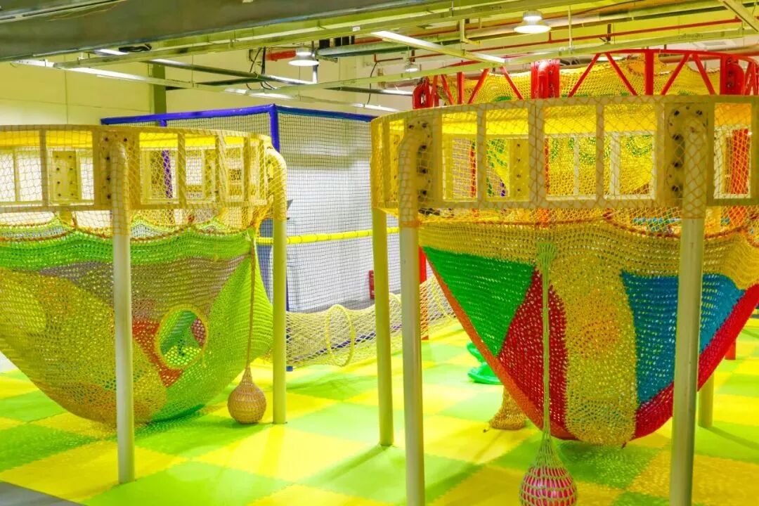 蹦床区、滑滑梯、淘气堡、彩虹网