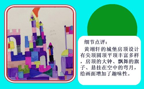 作品点评:黄翊轩这幅作品能把握住克利的绘画特点,主题突出,城堡的造型设计的很好,同时颜色的搭配也非常和谐统一