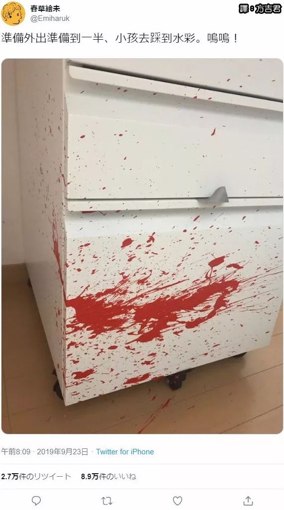 看起来像是踩到水彩后,家庭教育留下的痕迹