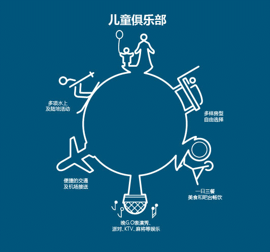 自由选择的多样房型往来当地度假村的接送服务(收费,自由选择)度假村内不同餐厅一日三次豪华国际美食中餐和晚餐时无限畅饮葡萄酒、啤酒和软饮料尽情体验精彩纷呈的休闲活动:健身中心、桑拿、游泳、空中飞人等各式运动项目迷你俱乐部(4-10岁)、青少年俱乐部(11-17岁)度假村内每日不间断的免费娱乐活动,晚间大型文艺演出及欢乐氛围度假村内各项水上、陆上活动以及相关的教练指导和入门课程酒吧畅饮、精美点心供应婴儿便利设施,儿童迷你俱乐部(4-10岁),青少年俱乐部(11-17岁)