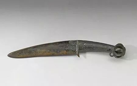 商后期的铃首曲背弯刀,青铜兵器。