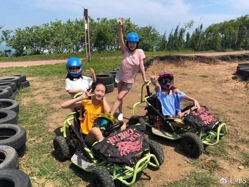 小S带着三个女儿,在火山岛体验着各种娱乐项目