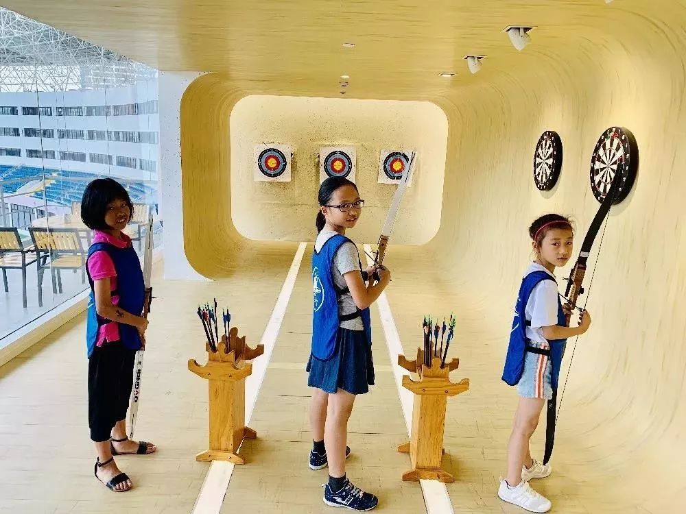 有的孩子觉得校园里学习射箭