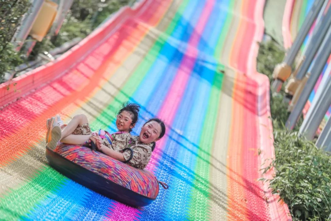 08:30 网红七彩滑道:又叫彩虹滑道,因它斑斓的滑道像是天边的彩虹,美丽又梦幻!这是一条欢乐、刺激的彩坡地旱滑滑道,坐上滑道圈,从长长的滑道飞驰而下