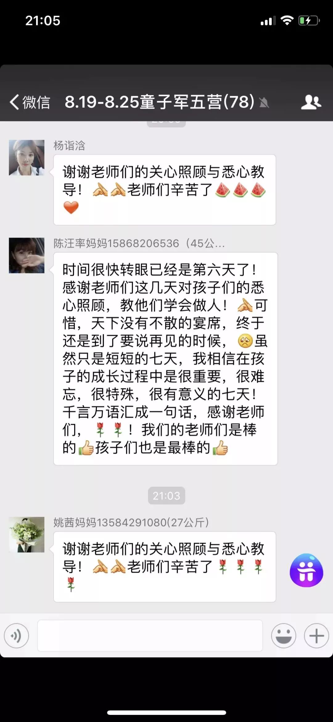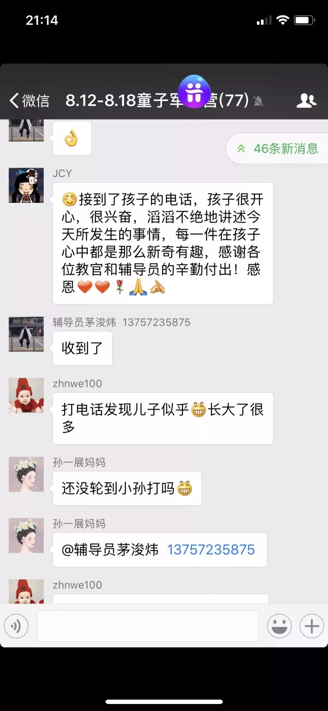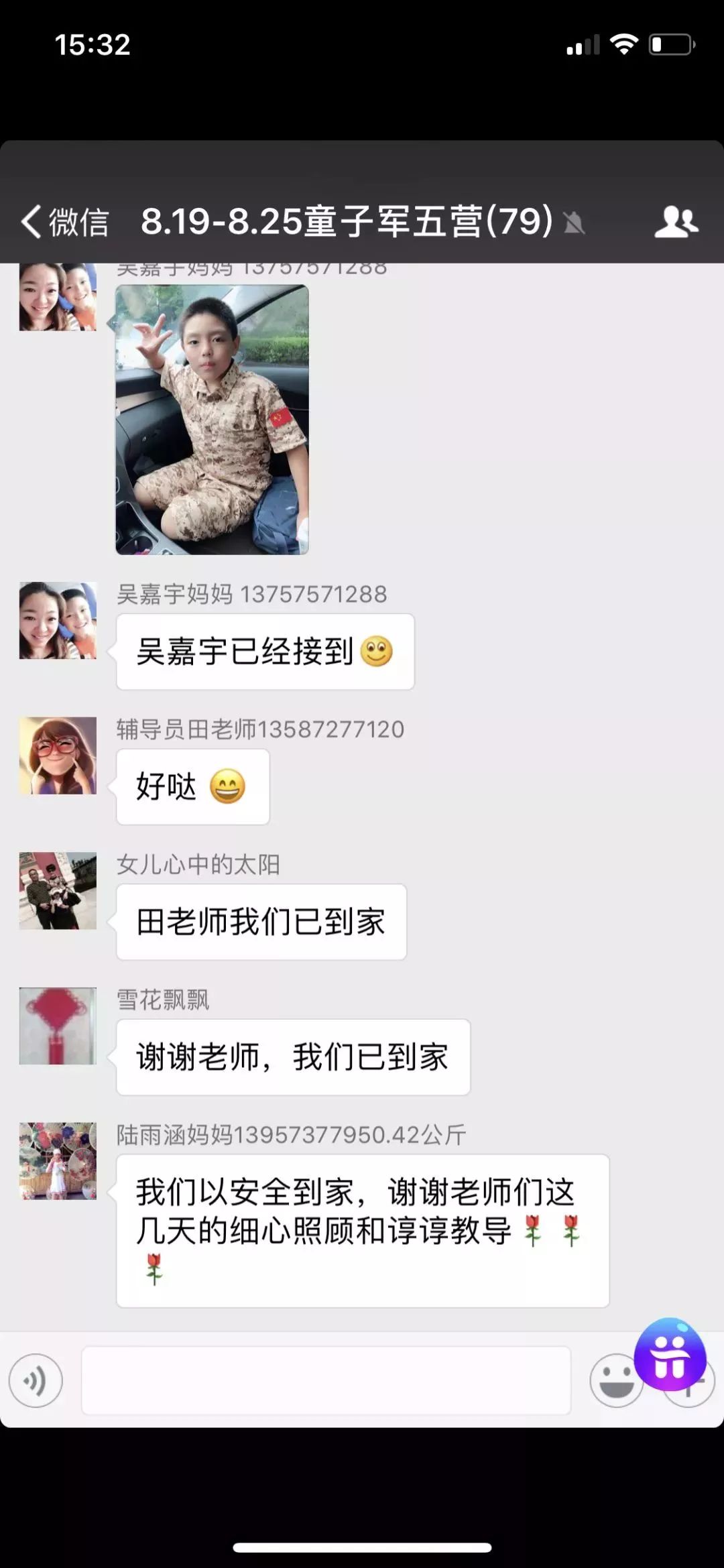 【3】关于想家的孩子:根据我们的经验,基本都为第一天晚上快到睡觉的时候,开始想妈妈,然后第二天基本没事了。但是这个时候,往往也是家长最想知道孩子想不想妈妈的时候,所以建议那些第一次出门的,而你又特别想孩子的,打电话时间安排在中午,晚上不打。或者可以通过教练了解孩子的信息,通过打教练的手机给孩子接听。这样容易帮助孩子渡过想家期。