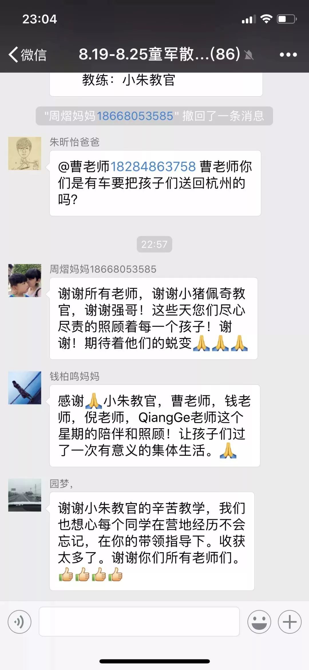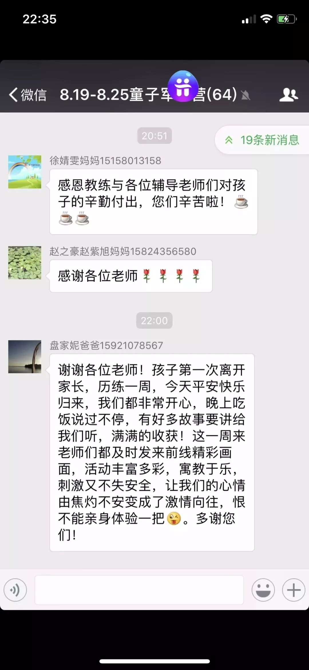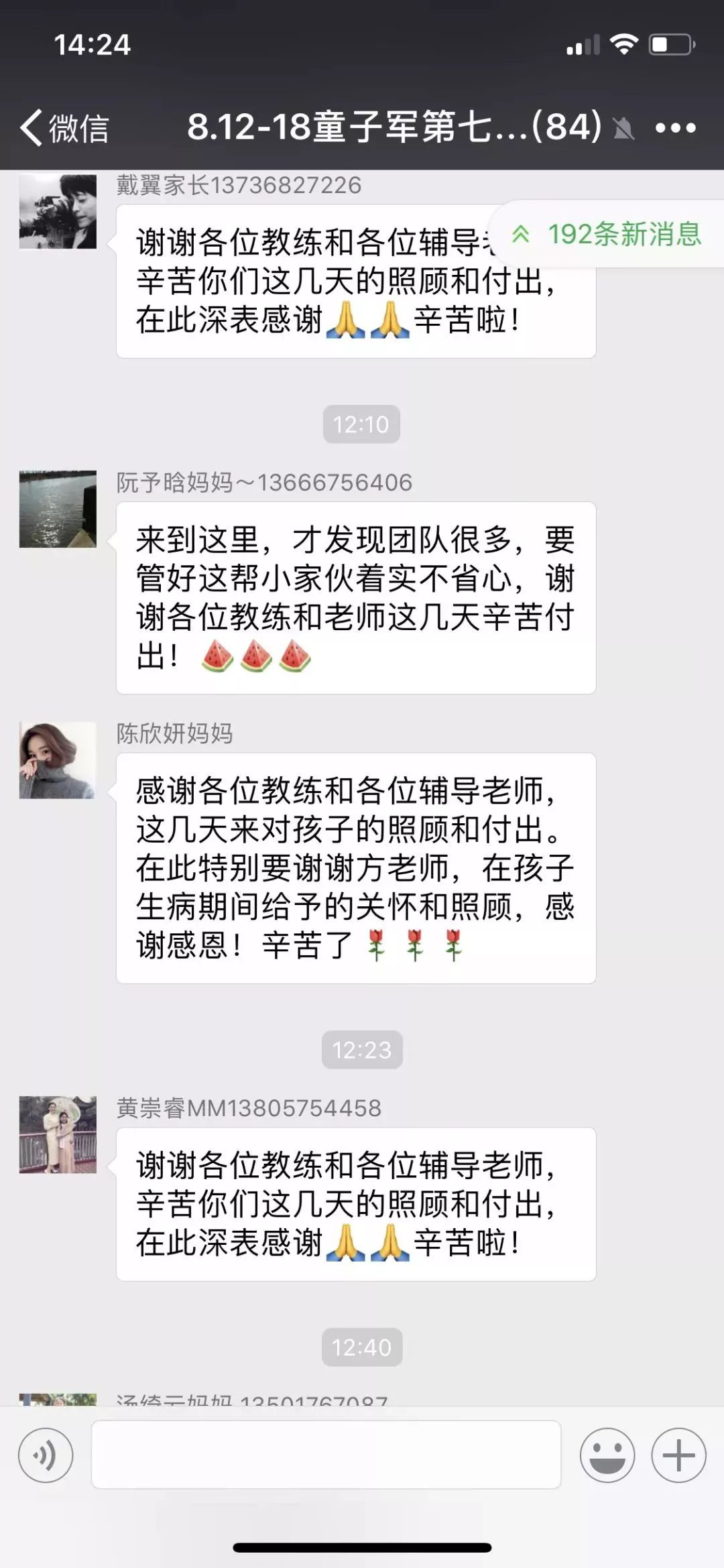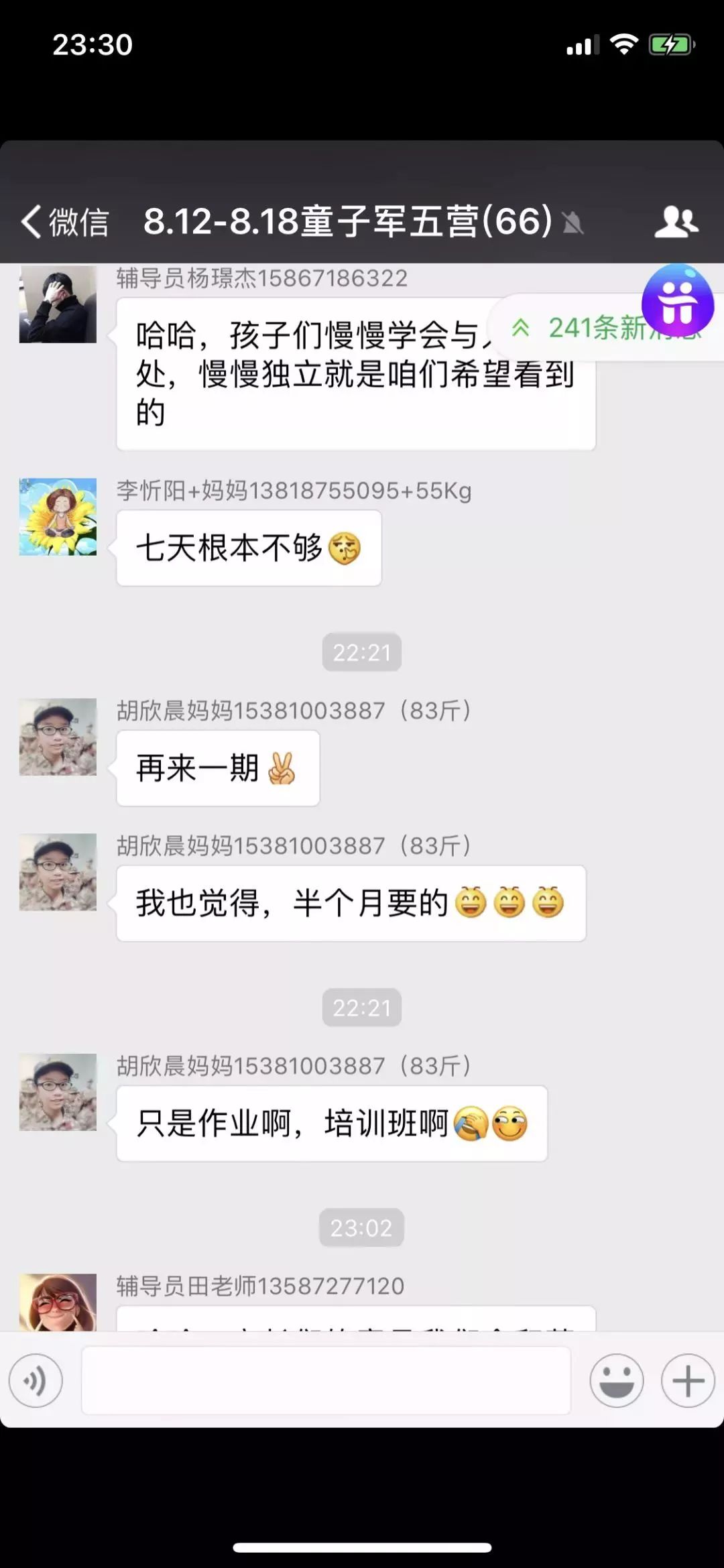 【3】关于想家的孩子:根据我们的经验,基本都为第一天晚上快到睡觉的时候,开始想妈妈,然后第二天基本没事了。但是这个时候,往往也是家长最想知道孩子想不想妈妈的时候,所以建议那些第一次出门的,而你又特别想孩子的,打电话时间安排在中午,晚上不打。或者可以通过教练了解孩子的信息,通过打教练的手机给孩子接听。这样容易帮助孩子渡过想家期。
