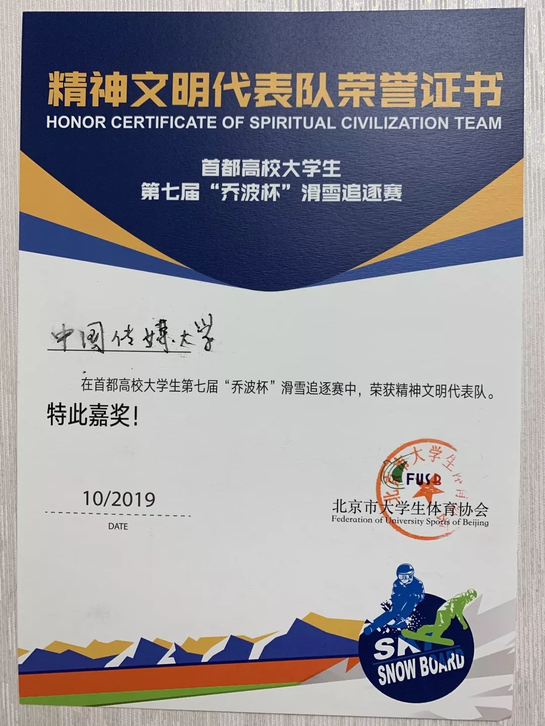 我校滑雪协会于今年成立,致力于在校内普及滑雪运动,定期组织滑雪教学、比赛活动。虽然我校雪协仍处于起步阶段,本次比赛是协会成立后的首次出征,但是期望在以后的比赛中继续努力,在冰雪赛场上赢得传媒荣耀。
