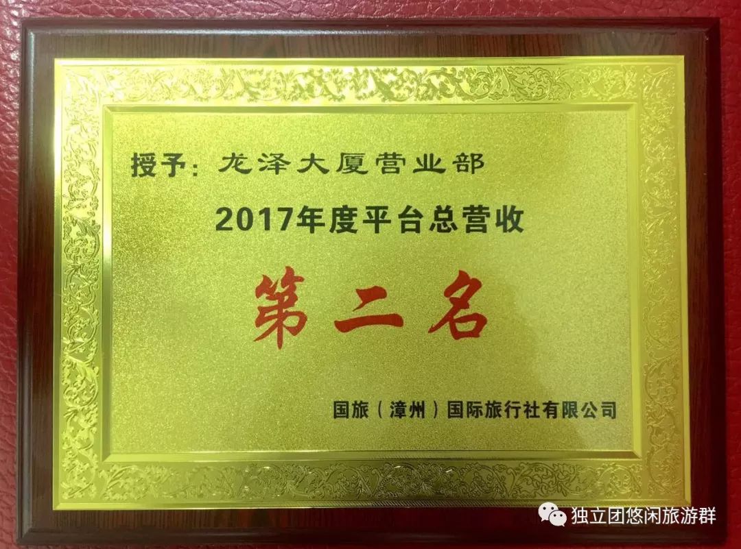 漳州龙泽国旅营业部2018年荣获漳州国旅销售业绩第1名