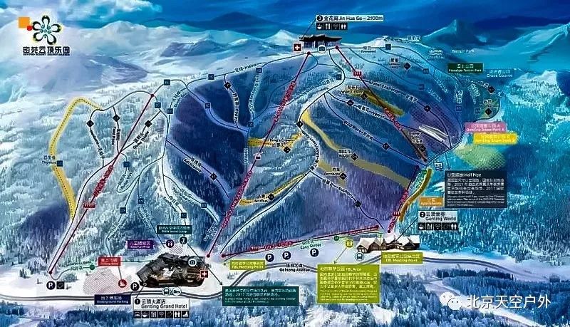 位于河北省张家口市崇礼区,距北京220公里,张家口59公里,2019年高铁建成后仅50分钟,规划高速公路车程1小时20分钟。由马来西亚卓越集团(VXL Group)主席拿督林致华(Datuk Lim Chee Wah)和马来西亚云顶集团(Genting Group)主席丹斯里林国泰(Tan Sri Lim Kok Thay)共同创立,总投资180亿元,占地100平方公里。是目前中国华北地区投资规模最大、规划区域最广、设计理念最新、服务理念最人性化的山地度假胜地。