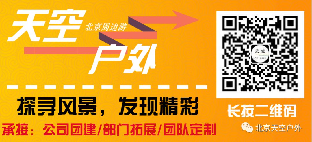 关于北京天空户外北京天空户外,最具活力的北京户外旅行团队!周末/节假日,组织徒步、登山、露营、自驾等多种形式的户外活动。同时,我们为企业客户及团体组织,提供专业的定制旅行、户外拓展、团队建设项目。