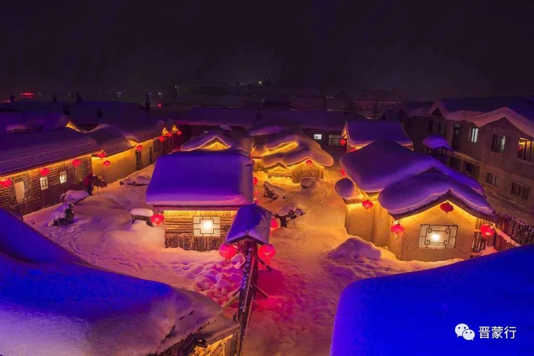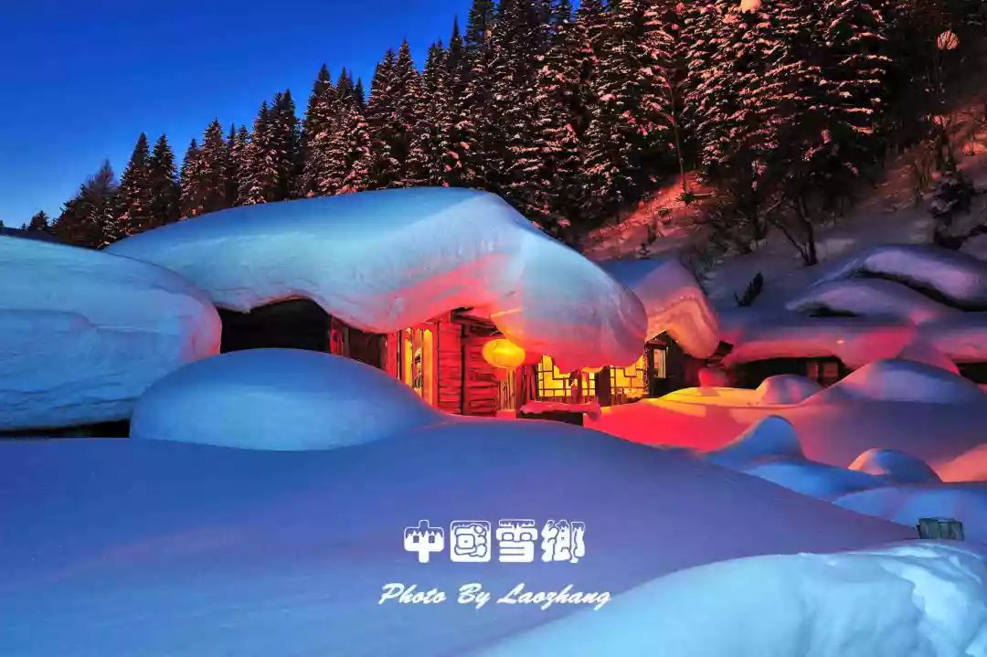在这里,就尽情地各种拍吧!最大的亮点是在早晚,早上阳光下的雪蘑菇温馨淡雅,晚上灯笼红中的雪房子恬静喜庆的家庭氛围,这时候拍照很美。
