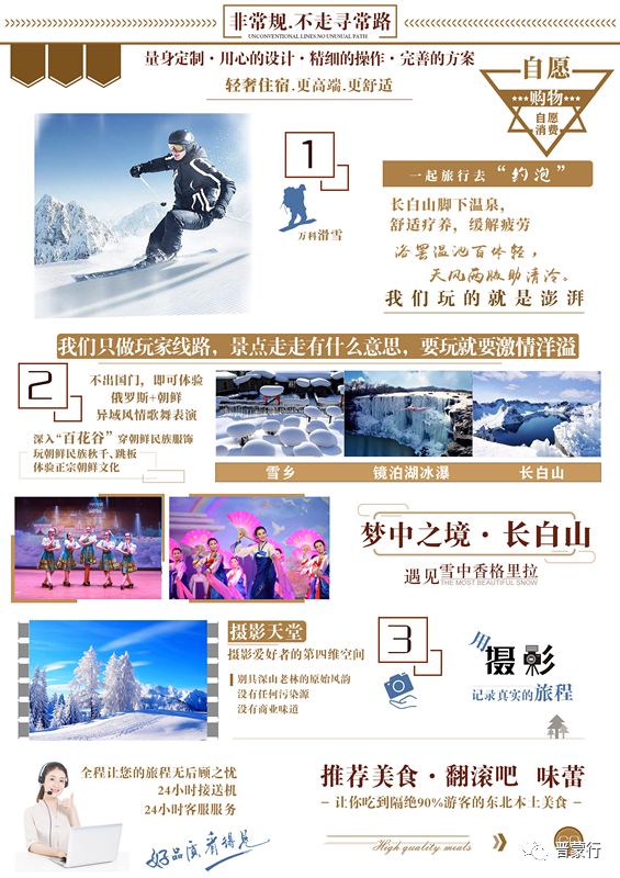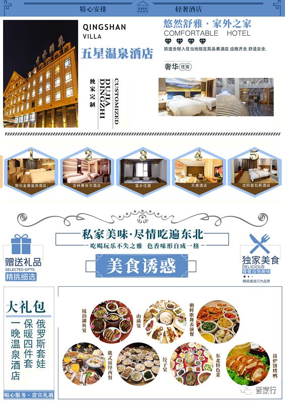 ◎ 特色景点:万科滑雪、露水河狩猎场、长白山火山温泉、中国四大自然奇观—雾淞、碧泉河温泉漂流、俄式西餐观看俄罗斯歌舞表演、观看北朝鲜歌舞表演、镜泊湖冰瀑、梦幻雪乡