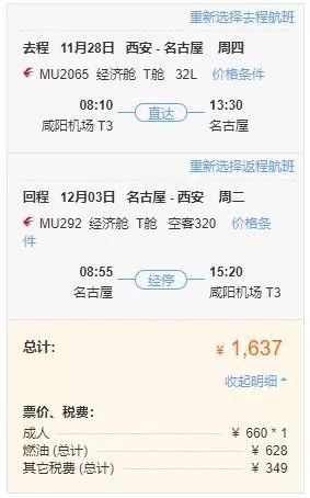 红叶季,西安往返名古屋只要1.6K,算是正常价,今年西安飞日本集中大爆发,价格也是一降再降 。