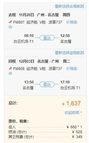 广州往返名古屋红叶季1.6K,也还可以广州直飞日本好价比较少,基本费廉航直飞最低也就这个价格。