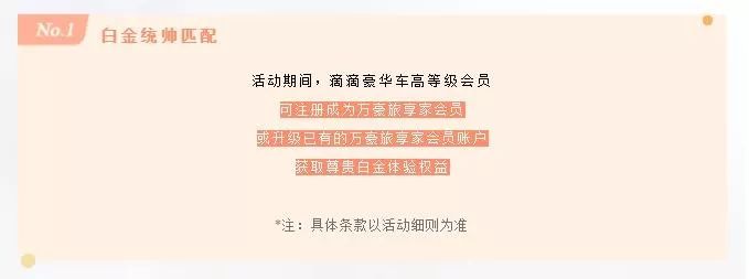 周六的时候万豪官方宣布了和滴滴战略合作的相关消息。重点来了!双方将通过白金统帅匹配、白金挑战、积分挑战等活动,展开一系列的会籍服务,提供更好的用户体验。