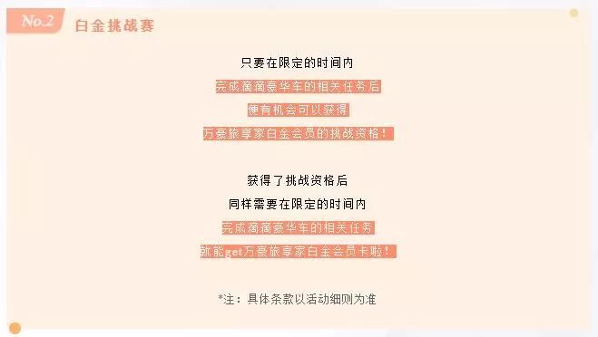 看完这些信息以后,本来打算拿女票的滴滴白金去挑万豪白金的老司机已经放弃了。关键词“豪华车”,本活动其实主要是针对滴滴的豪华车用户的,不论是macth会籍,还是会籍挑战都要达到滴滴豪华车等级并使用豪华车才行。