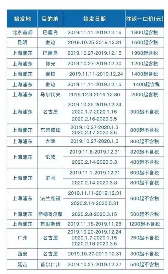 上海飞东南亚地区的巴厘岛/缅甸/暹粒也有还不错的价格,错峰班期为主,大家谨慎选择。