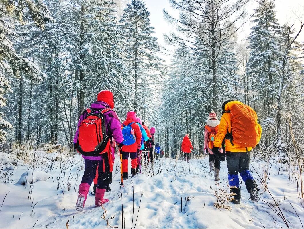 这是一条经典的徒步路线15公里,大人小孩皆可行进,沿途景色美轮美奂:两米深的积雪、山顶眺望万里林海雪原、堪比雾凇奇观的树挂仙境…本次穿越是行程最大亮点,是众多队友望眼欲穿、必来一次的穿越之旅。