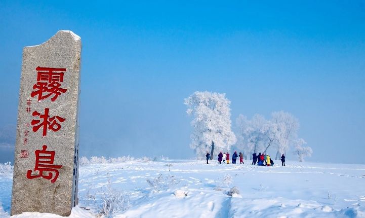 雾凇岛因雾凇多且美丽而得名。这里树形奇特,沿江的垂柳挂满了洁白晶莹的霜花,江风吹拂银丝闪烁,景色既野又美。雾凇俗称树挂,为我国四大奇观之一。