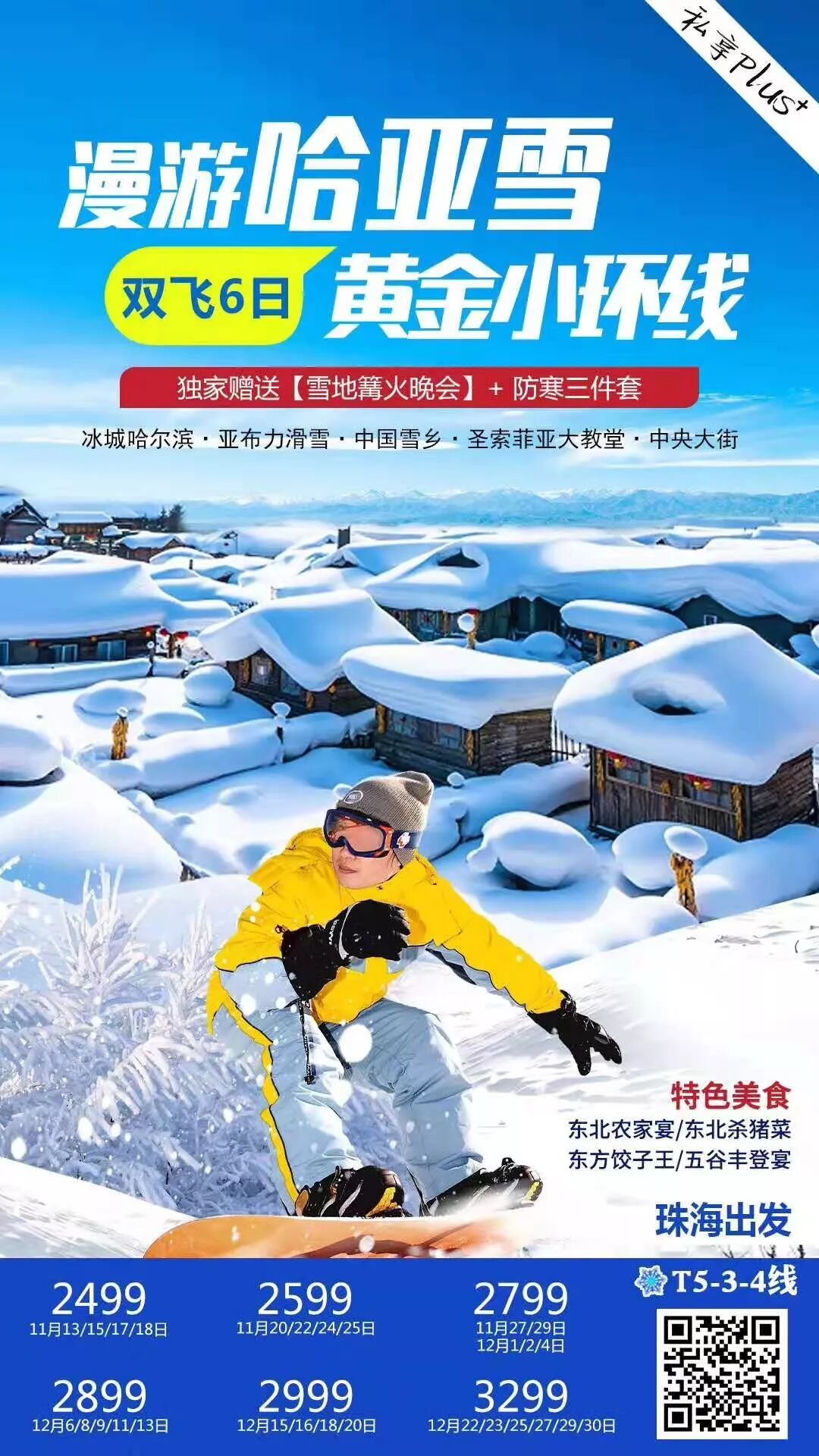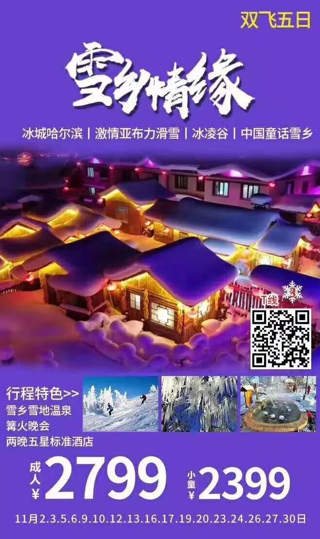 11月玩雪去吧! 冰城哈尔滨、 亚布力激情滑雪、走进第一 “雪乡”
