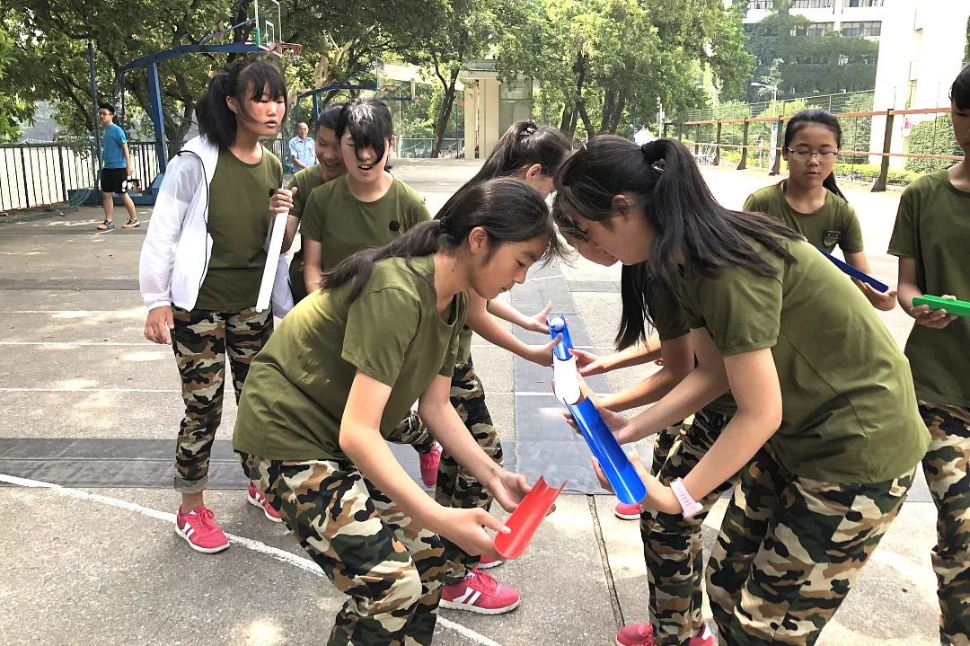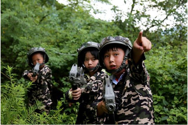 由现役空军部队的叔叔们为同学们演示“持枪格斗”,并且还有机会学习更多的军用格斗技巧。