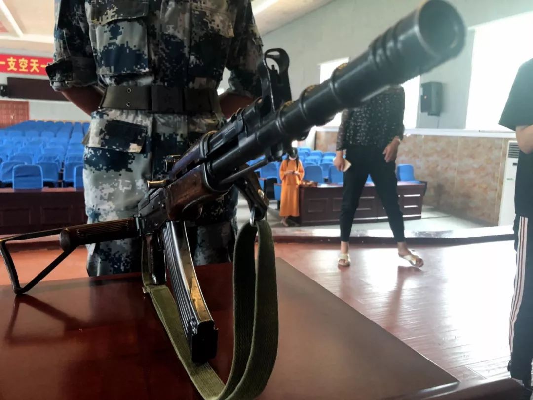 勤务连班长深入讲解81-(加强版AK47)、92式手枪、77式飞行员用枪、54式部队首长用枪等现役枪支,并解答同学们对枪支的相关问题。