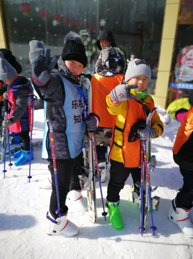 由资深滑雪教练带着学生们做滑雪前的准备及注意事项