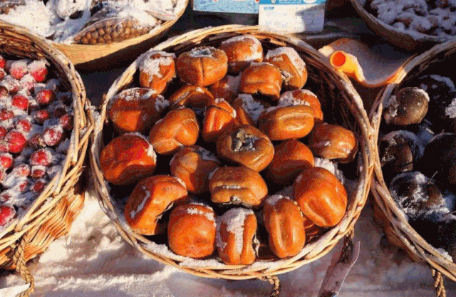 冻梨你别看它黑乎乎的长得不好看,但它是真的好吃。刚拿出来的冻梨坚硬无比,当冻梨逐渐解冻,表面变得坑坑洼洼,就是吃它的最好时机。