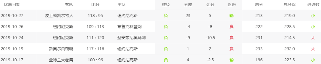 纽约尼克斯在新赛季先是遭遇两连客败之后,该球队又重新回到主场作战,但他们还是未能取得胜利,在上轮比赛中面对凯尔特人上半场表现不错还能够与对方抗衡,但打到下半场他们就没有对方球队稳定了。对于该场比赛继续主场作战的他们或许能拿下新赛季的首胜。